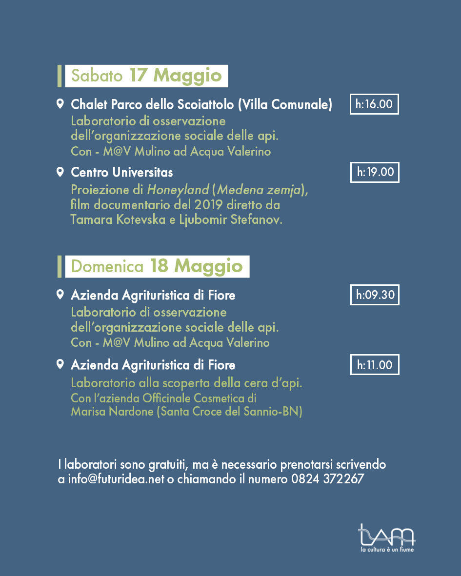 Insieme all'azienda di Marisa Nardone Officinale Cosmetica, domenica dalle ore 11.00 sperimenteremo invece le proprietร e i tanti usi della cera d'api, realizzando candele e semplici ed efficaci prodotti cosmetici.Festeggeremo infine la giornata mondiale delle Api, in programma per il 20 Maggio, con la proiezione di Honeyland (Medena zemja), film documentario del 2019 diretto da Tamara Kotevska e Ljubomir Stefanov, che racconta l'equilibrio delicato tra uomo e natura attraverso la vita di Hatidze, un'apicoltrice che custodisce un ecosistema sostenibile in una remota area della Macedonia del Nord.